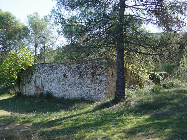 Situada al final d'un curt camí que surt des de la pista a la Plana Novella, a mà dreta, a uns 3.200 metres des de l'Ajuntament de Begues.